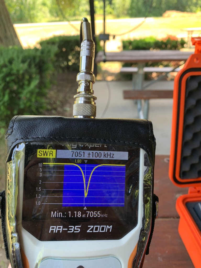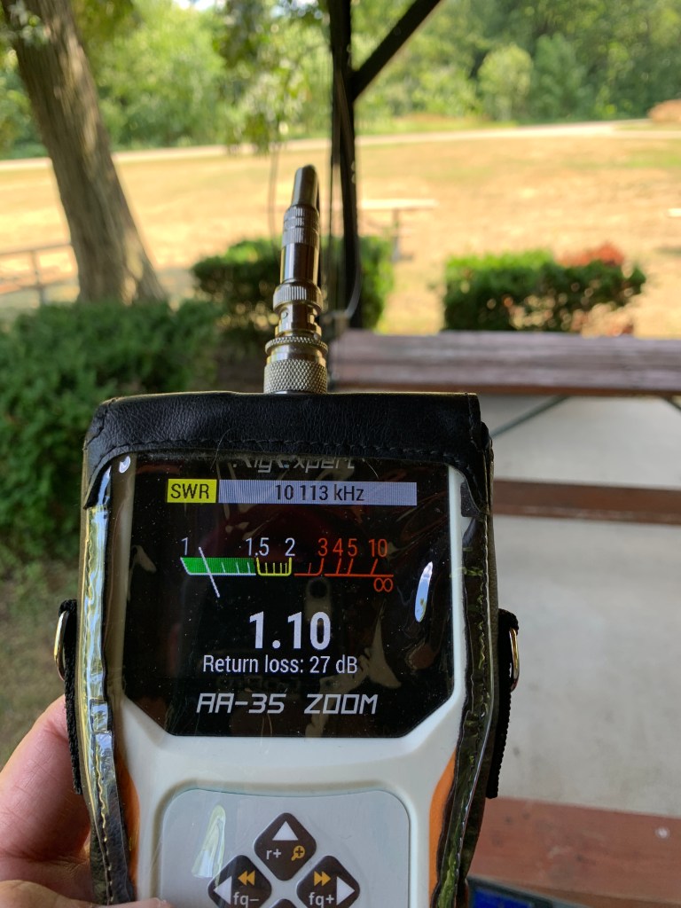 Tuning was easy, though a little touchy. I listened for the most noise on the radio and them fine tuned it with my Rig Expert A35. It was close enough for me at about 1.2:1 so it was time to activate said park!
