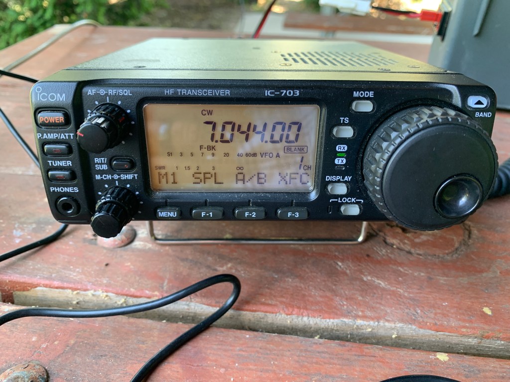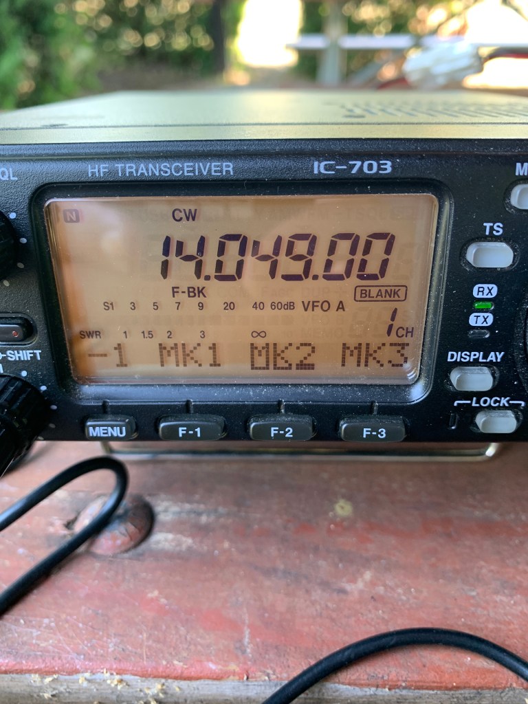 Starting out an activation with little time at the controls of a radio is probably not one of my better ideas. I did watch a couple of YouTube videos and download the manual last night so I wasn’t totally blind going in. Having never owned an IC-706 like radio before, I was pleasantly surprised at how intuitive it was to operate. Once I figured out how to navigate to pertinent menu items like power setting, keyer controls and filtering, it was smooth sailing.